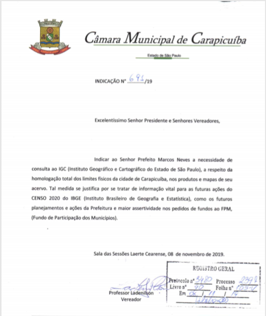 Indicação 691/2019 – IBGE e limites físicos do município Compartilhe com os amigos:TweetShareShareEmail