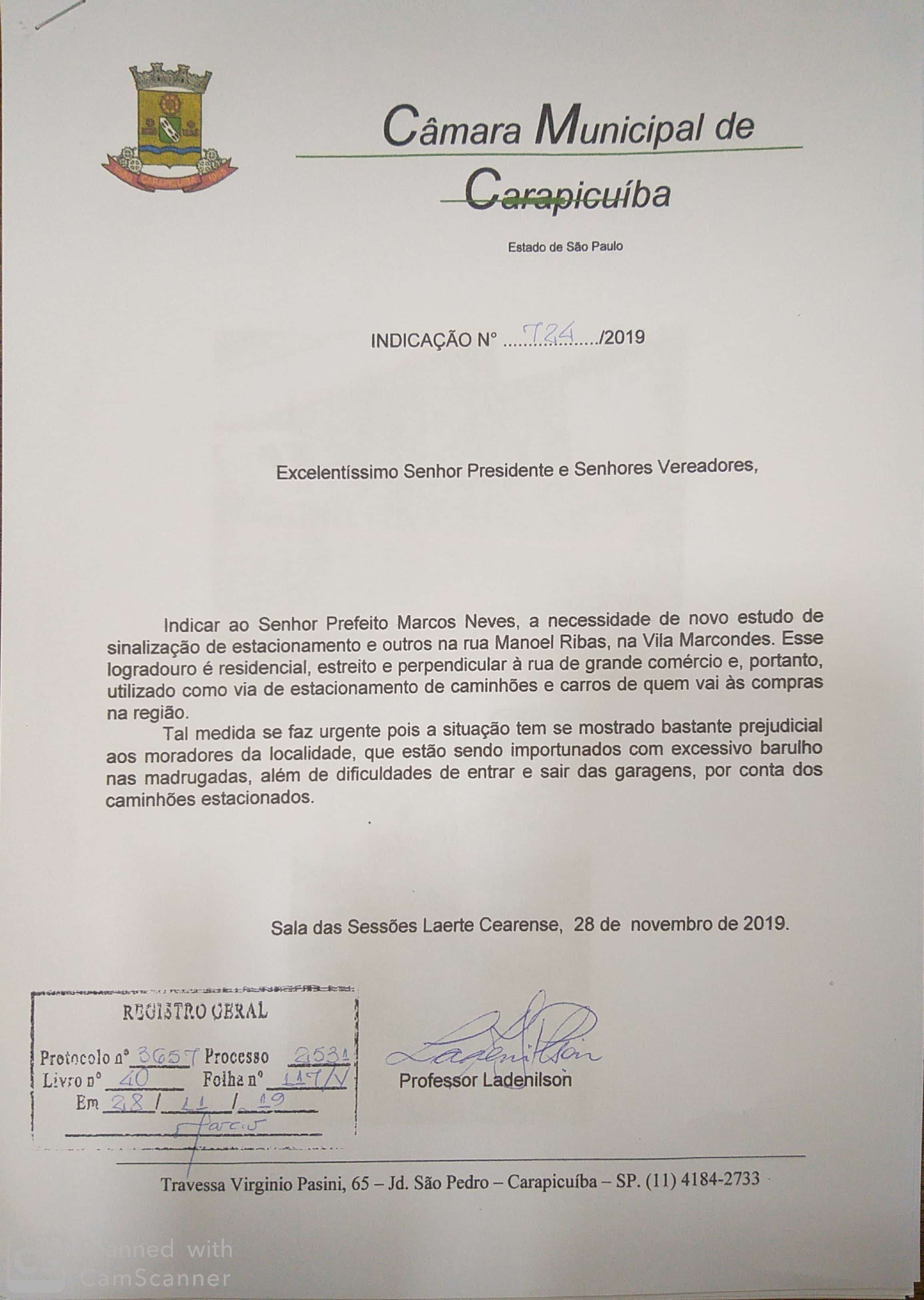 Indicação 724/2019 – estudo de sinalização e estacionamento na rua Manoel Ribas, na Vila Marcondes Compartilhe com os amigos:TweetShareShareEmail