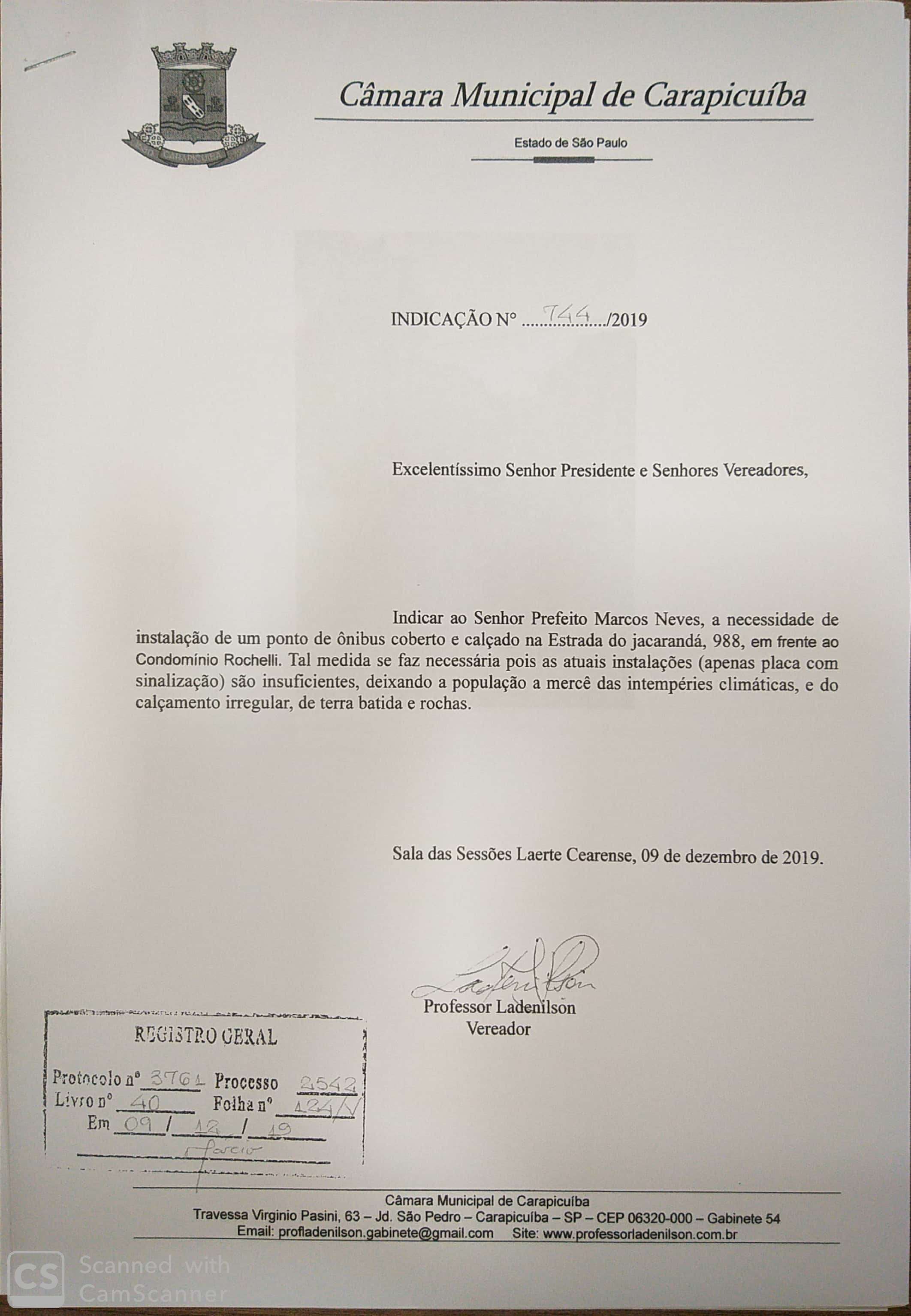 Indicação 744/2019 – Ponto de ônibus na Av. Jacarandá, 988 Indicação 740/2019 – Compartilhe com os amigos:TweetShareShareEmail