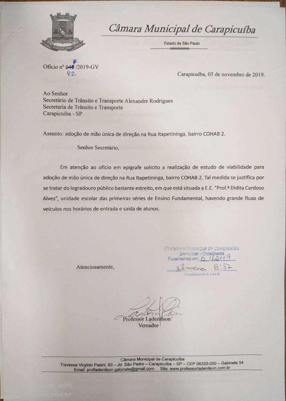 Ofício 42/2019 – Mão única na Rua Itapetininga, na COHAB 2 Compartilhe com os amigos:TweetShareShareEmail