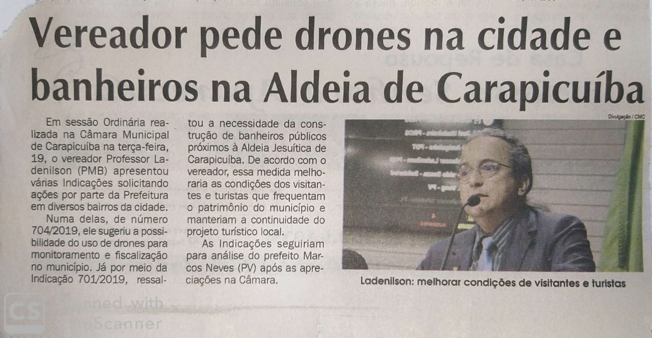 Página Zero: Vereador pede drones na cidade e banheiros na Aldeia de Carapicuíba Compartilhe com os amigos:TweetShareShareEmail