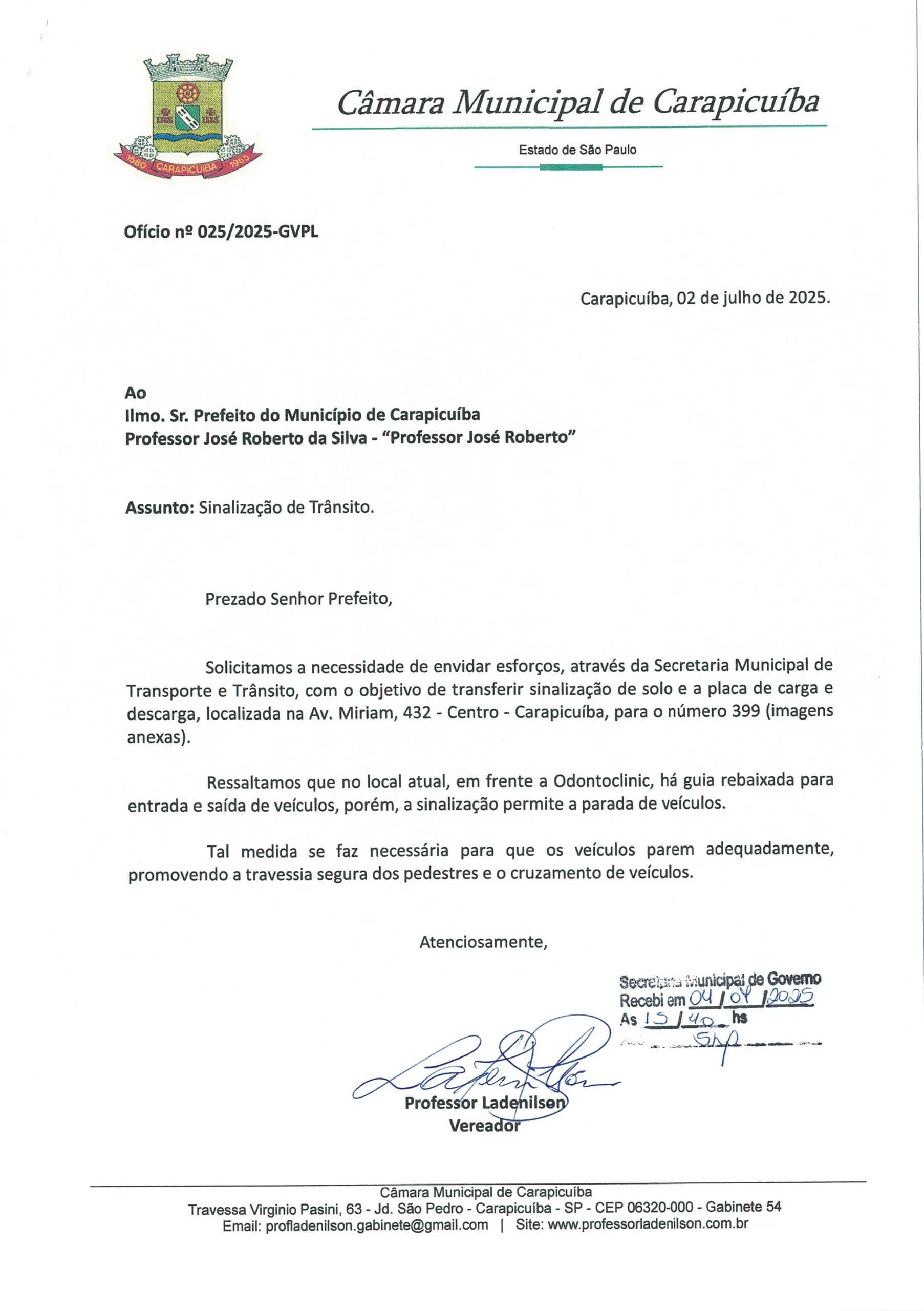 Ofício 025/2025: Solicita sinalização de trânsito na Av. Miriam – Centro – Carapicuíba Compartilhe com os amigos:TweetShareShareEmail